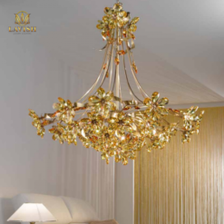 • Chất liệu: Đồng mạ vàng kết hợp với pha lê Asfour.